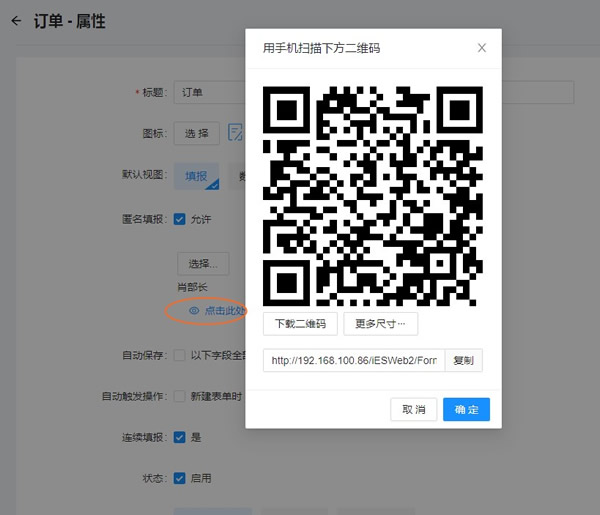 1.表单模板的【属性】页面,“匿名填报”勾选【允许】。