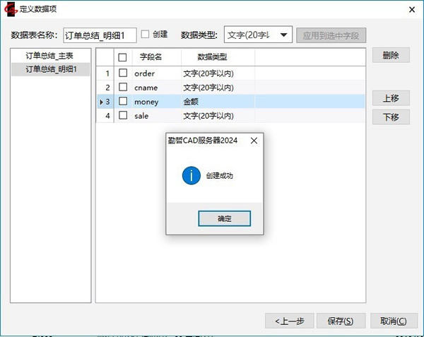5.设置“订单总结-明细2”的字段数据类型后,点击【保存】