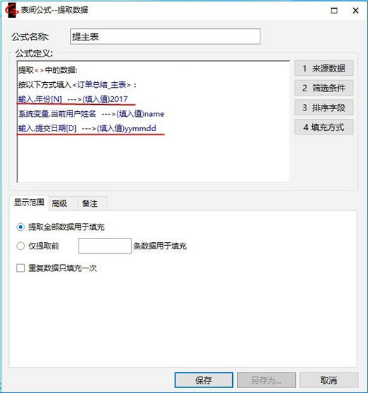 注:word模板中的提数公式中,填充方式暂时只有"填入值"。