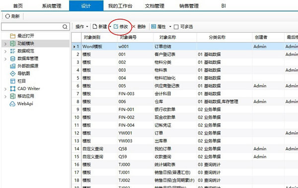 新建成功的word模板若需要修改字段的数据类型,或是设置字段的数据规范,则首先选中模板点击【右键】。