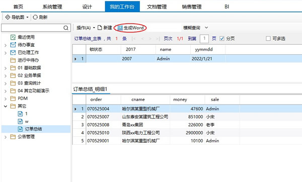 如何通过系统操作word文件?将系统里的数据填写到指定格式的word文档中呢?下面我们以一份Word格式的总结报告(其中使用到系统订单的数据)为例来看一下如何使用word模板功能。